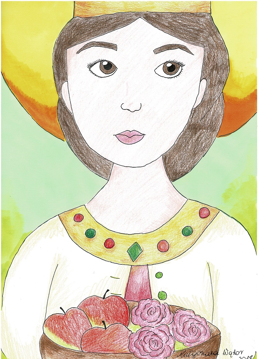Św. Dorota – urodziła się w bogatej rodzinie w Kapadocji (obecnie Turcja), jednak wyrzekła się majątku i wybrała ubogie życie. W dziewczynie zakochał się król Fabrycjusz. Złożył jej propozycję małżeństwa, zastrzegł jednak, że jako jego żona musiałaby wyrzec się wiary chrześcijańskiej. Dorota odmówiła, co zezłościło okrutnego władcę. Nakazał on wydać Dorotę na tortury. Jednak biczowanie, podpalanie pochodniami i szarpanie hakami nie zmieniło jej decyzji. Została więc wtrącona do więzienia, gdzie nie podawano jej żadnego pokarmu przez 9 dni. Umierająca, została uleczona przez Chrystusa tak, że kiedy prowadzono ją na sąd, jej ciało było zdrowe i piękne. Zdumiony jej urodą sędzia Teofil postanowił łagodnie namówić ją na wyrzeczenie się wiary, ona jednak pozostawała nieugięta. Została więc skazana na śmierć przez ścięcie. Do opisu męczeństwa dołącza się legendę, która głosi, że podczas drogi na miejsce egzekucji Teofil naśmiewał się z męczennicy, prosząc, aby przysłała mu owoce z rajskiego ogrodu, do którego, jak twierdziła, trafi po śmierci jako oblubienica Chrystusa. Przed samą śmiercią Doroty na miejscu egzekucji pojawiło się odziane w purpurę dziecko, trzymające w rękach koszyk, w którym znajdowały się jabłka i róże (było to niezwykłe wydarzenie, ponieważ egzekucja miała miejsce w lutym). Przed śmiercią Dorota poprosiła dziecko, aby zaniosło koszyk do domu Teofila. Ten, widząc oczywisty cud i obiecane rajskie owoce, nawrócił się na chrześcijaństwo. Dorota miała ponieść śmierć męczeńską za panowania cesarza Dioklecjana (284-305). Kult Doroty męczennicy szybko rozszerzył się po całej Europie. Jest czczona zwłaszcza we Włoszech, Niemczech, Czechach i Polsce. W ludowej tradycji Polski południowej istniał, jeszcze w okresie międzywojennym XX w., ciekawy zwyczaj zwany dorotkami lub „chodzeniem z Dorotą” w okresie Bożego Narodzenia, podobny do „herodów”. Była to inscenizacja męczeństwa świętej Doroty. Orszak aktorów składał się z pary bohaterów: Doroty i Fabrycjusza, pogańskiego króla, którego nie chciała poślubić oraz z królewskiego posłańca, Teofila, kata, anioła i diabła. Przedstawienie kończyło się sceną porwania króla Fabrycjusza do piekła.  Jej postać była ulubionym tematem malarzy. Św. Dorota jest patronką m.in. młodych małżeństw, ogrodników, botaników i górników. W ikonografii  atrybutami Św. Doroty są: anioł, trzy jabłka i trzy róże lub kosz z owym rajskim prezentem, a także korona, krzyż, lilia, miecz, palma męczeństwa. Św. Dorota przedstawiana jest w stroju królewskim, czasami wśród chórów anielskich.